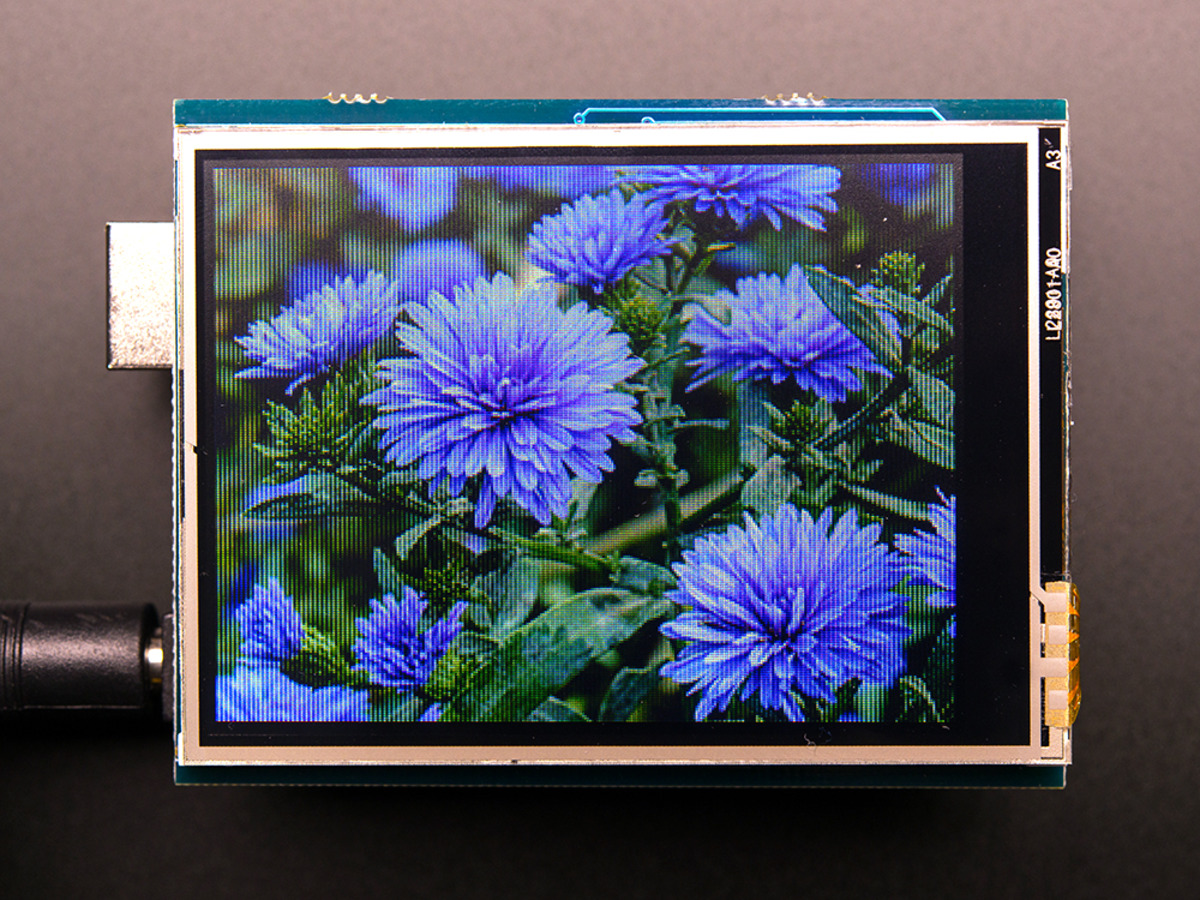 Spice up your Arduino project with a beautiful large touchscreen display shield with built in microSD card connection. This TFT display is big (2.8" diagonal) bright (4 white-LED backlight) and colorful (18-bit 262,000 different shades)! 240x320 pixels with individual pixel control. It has way more resolution than a black and white 128x64 display. As a bonus, these displays has a resistive or capacitive touchscreen attached to it already, so you can detect finger presses anywhere on the screen.