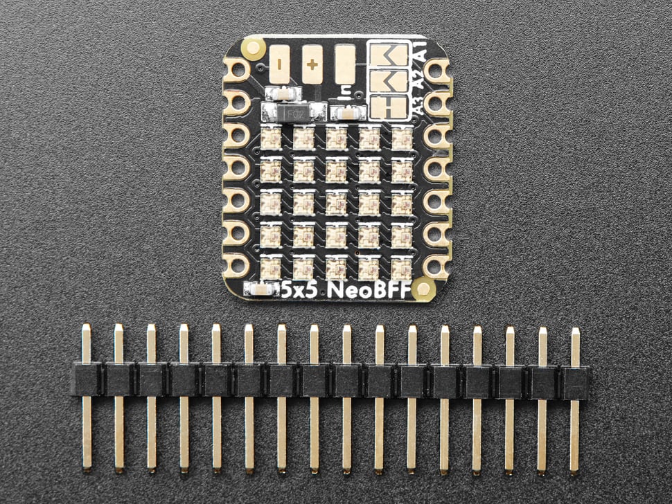 Our QT Py boards are a great way to make very small microcontroller projects that pack a ton of power - and now we have a way for you to quickly add a glittering grid of 25 RGB addressable micro NeoPixels. It's an excellent way to make tiny wearable, cosplay, or IoT projects with dazzling LEDs.