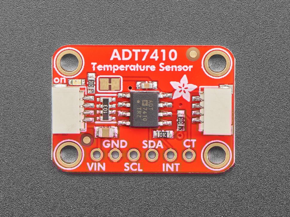 Analog Devices, known for their reliable and well-documented sensor chips - has a high precision and high resolution temperature sensor on the market, and we've got a breakout to make it easy to use! The Analog Devices ADT7410 gets straight to the point - it's an I2C temperature sensor, with 16-bit 0.0078°C temperature resolution and 0.5°C temperature tolerance. Wire it up to your microcontroller or single-board computer to get reliable temperature readings with ease
