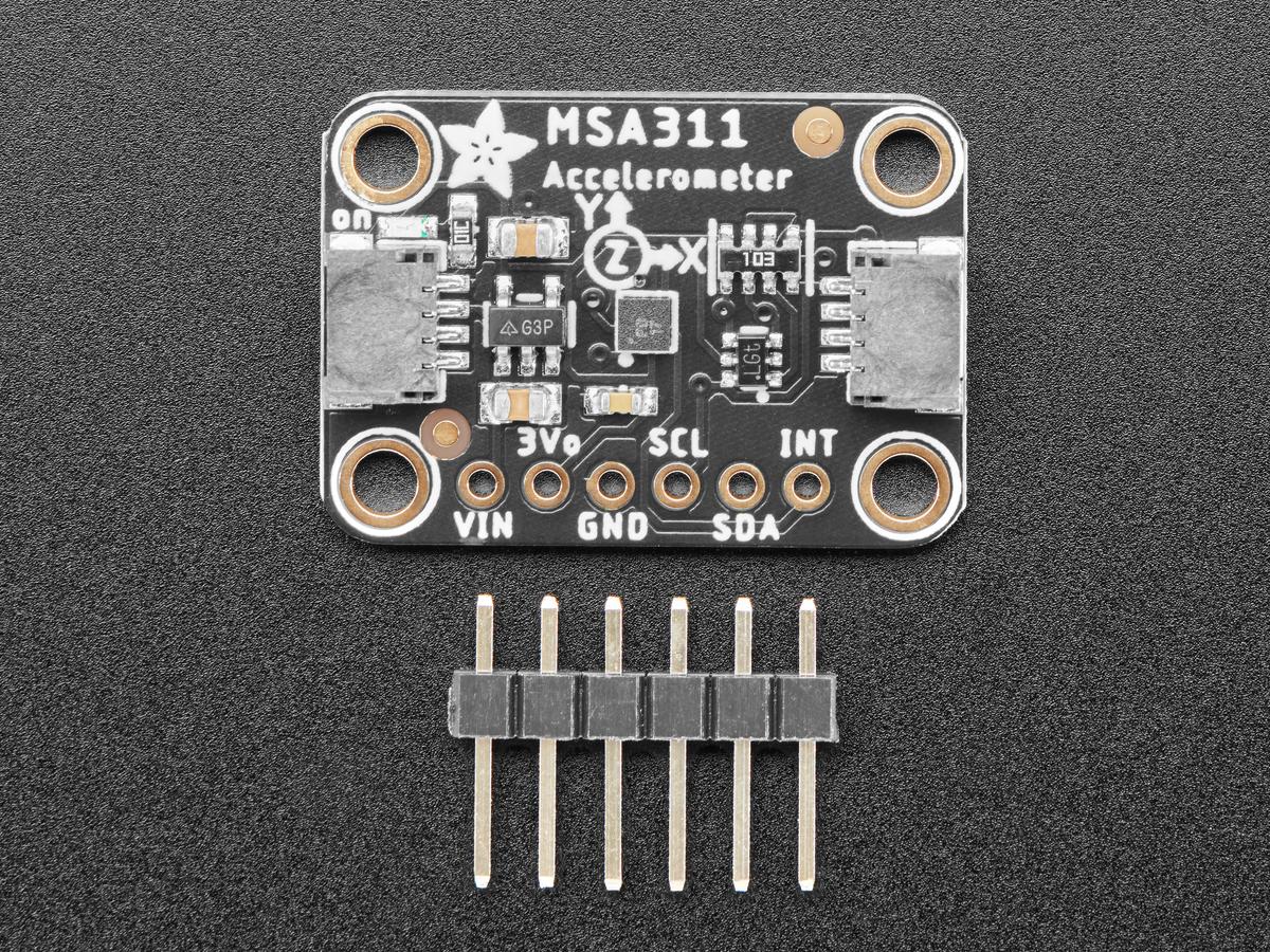 The MSA311 is a super small and low-cost triple-axis accelerometer. It's inexpensive, but has just about every 'extra' you'd want in an accelerometer: